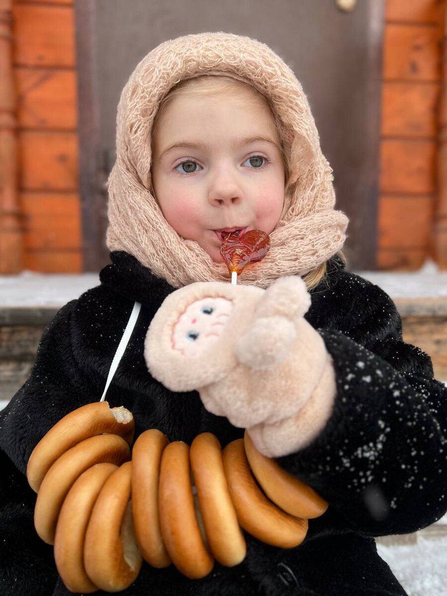 Рецепт зимней фотосессии в домашних условиях прост Ингредиенты: 1. Зовем своего ребенка; 2. Достаем старую шубу и шаль; 3. Покупаем бублики и ретро леденец; 4. Фоткаемся. Желательно использовать локации деревни, леса или даже снимать крупным планом в городском парке Получается прикольно и стильно 😉 Пользуйтесь♥️