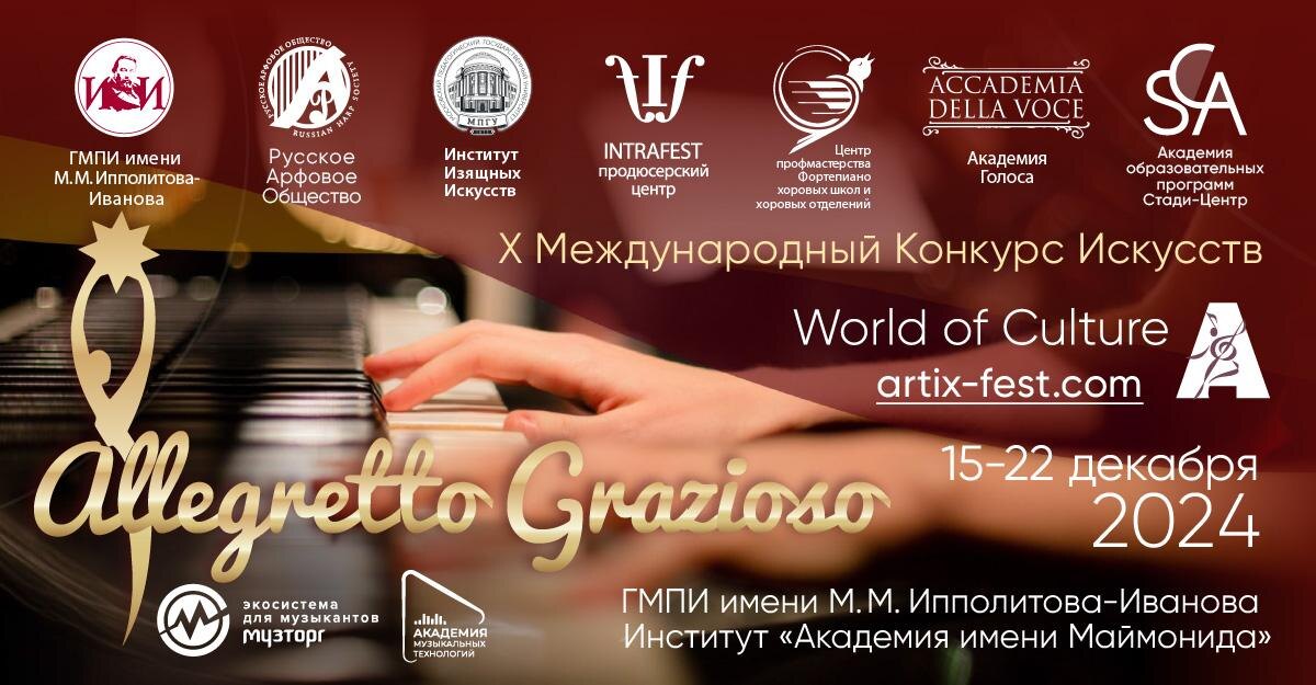 15 декабря 2024 г. в государственном музыкально-педагогическом институте имени М. М. Ипполитова-Иванова состоялся IX Международный конкурс-фестиваль искусств «Allegretto Grazioso-2024», организаторами которого выступили: фестивальное объединение «Артикс-Фест», ГМПИ имени М.М. Ипполитова-Иванова. Задачами конкурса являются приобщение участников к лучшим традициям и новым тенденциям в отечественной и зарубежной культуре, популяризация классических и современных направлений в искусстве среди детей и молодежи, выявление и поддержка ярких, самобытных и талантливых участников, создание благоприятных условий для дальнейшего раскрытия их творческих способностей. Конкурсные выступления в вокальных номинациях (более 50 конкурсантов) оценивало компетентное жюри: Кудрявцева В.В., к.п.н., доцент кафедры эстрадно-джазового искусства МПГУ Института Изящных Искусств, эксперт телевизионного вокального шоу «Ну-ка, все вместе!», член «Российской общественной Академии Голоса»; Кирьянова Я.Я., заведующая в