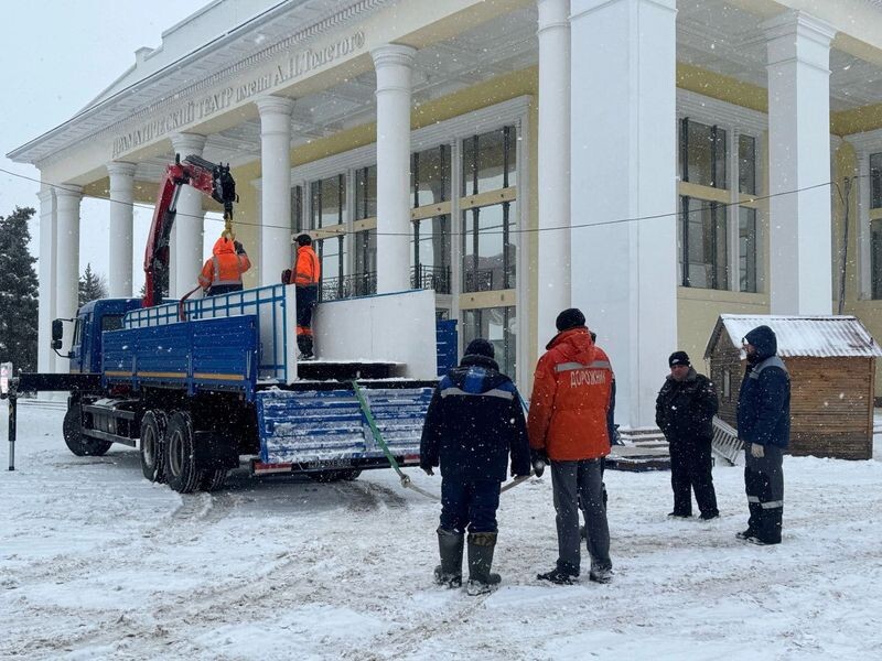 На центральной площади Сызрани начали устанавливать игровой комплекс зимних горок. Как передает с места корреспондент портала «маленькая Сызрань», автомобиль с первой частью игрового комплекса несколько минут назад прибыл на площадь имени Ленина, перед зданием драматического театра, на традиционное место установки комплекса. Сейчас идет разгрузка фрагментов большой горки - судя по размерам, это любимый детворою «Мономах». Монтаж традиционно проводят специалисты МКУ «Благоустройство». Отметим, что в этом году горки стали устанавливать чуть ранее, чем в декабре 2023-го: сразу, как только выпал настоящий зимний снег. В декабре 2023 года «Мономах» начали монтировать довольно поздно, 20 декабря. Тогда специалисты уточнили, что на установку комплекса может уйти неделя.