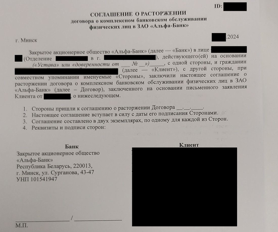В редакцию обратился Федор. Он был клиентом «Альфа Банка», потом сменил финансовое учреждение, но все равно продолжал получать сообщения от предыдущего банка. Читатель говорит, что попытался расторгнуть договор, но это оказалось не так просто, как заключить его. «Необходимо закрепить законодательно право клиента расторгнуть онлайн любой договор с банком», — считает мужчина.