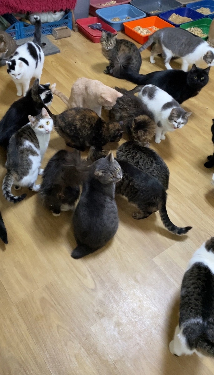 Но у корма есть такое свойство - быстро заканчиваться, особенно когда кошек и собак много. За последний месяц у нас несколько сложных кошек. Это Пчелка с эпилепсией, которая возникла на фоне травмы, ее избивали. И Лева, которого выкинули около магазина и он никуда не хотел уходить оттуда. И Каспер, подросток, выброшенный на рынке и почти вмерзший в землю. И Нона, кошка с боевых позиций, которую привезли ребята военные. Так же несколько десятков собак, которые нуждаются в нас. Наш кошачий приют находится в небольшом помещении, которое нам выделила