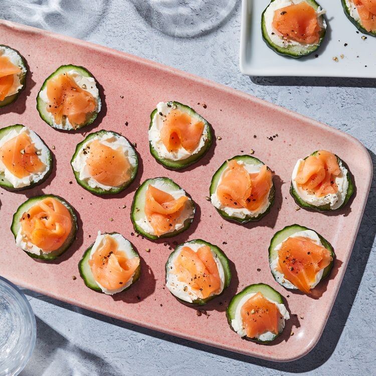 Ищете идею для быстрой закуски? Эти трехкомпонентные бутерброды из огурцов с лососем - беспроигрышный вариант. Помимо того, что это идеальный выбор для перекуса, этот быстрый и простой рецепт также отлично подходит в качестве закуски. Если у вас есть немного больше времени и дополнительные ингредиенты, попробуйте улучшить сливочный сыр, добавив нарезанную свежую зелень, например укроп или зеленый лук. Время приготовления: 10 минут Общее время: 10 минут Порций: 8