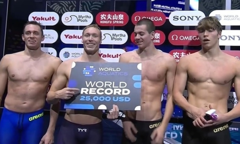 На чемпионате мира по плаванию в Будапеште наши спортсмены одержали победу в мужской эстафете 4х100 метров с мировым рекордом — 3:18,68 секунды!🔥