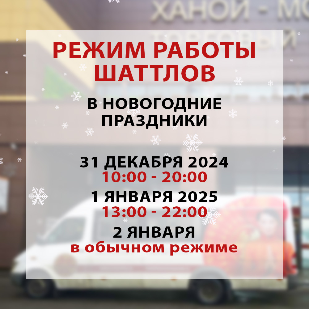 Уважаемые арендаторы и гости МФК «Ханой-Москва», доводим до вашего сведения, что бесплатный шаттл в праздничные дни будет работать по следующему графику: