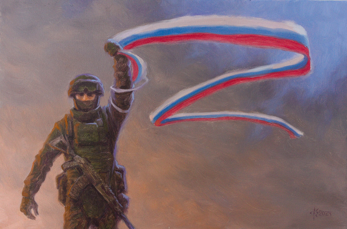 Идея нарисовать солдата с российским флагом появились после взятия Бахмута. Но никого четкого понимания, как солдат держит флаг не было. И как обычно, идея ушла в долгий ящик.
