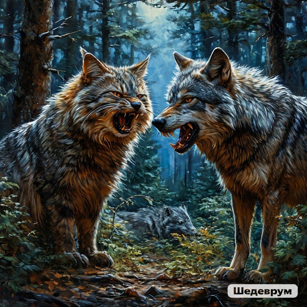 Барсик, словно прочитав его мысли, стал вдруг увеличиваться в размере. Через мгновение перед волком стоял хищный зверь ростом даже выше него. Теперь шипение звучало громче и устрашающе. Волк оскалился в ответ на угрозу, но сделал шаг назад, признав силу соперника.