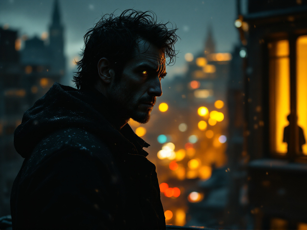 Ночной город растянулся перед Александром, как бескрайняя карта, подсвеченная золотом уличных фонарей. Холодный декабрьский ветер швырял в лицо снежные хлопья, словно упрёки за что-то, что он ещё не совершил. Александр стоял на балконе своего съёмного жилья, глядя на огни мегаполиса, и не мог перестать думать о том, что узнал пару часов назад.
