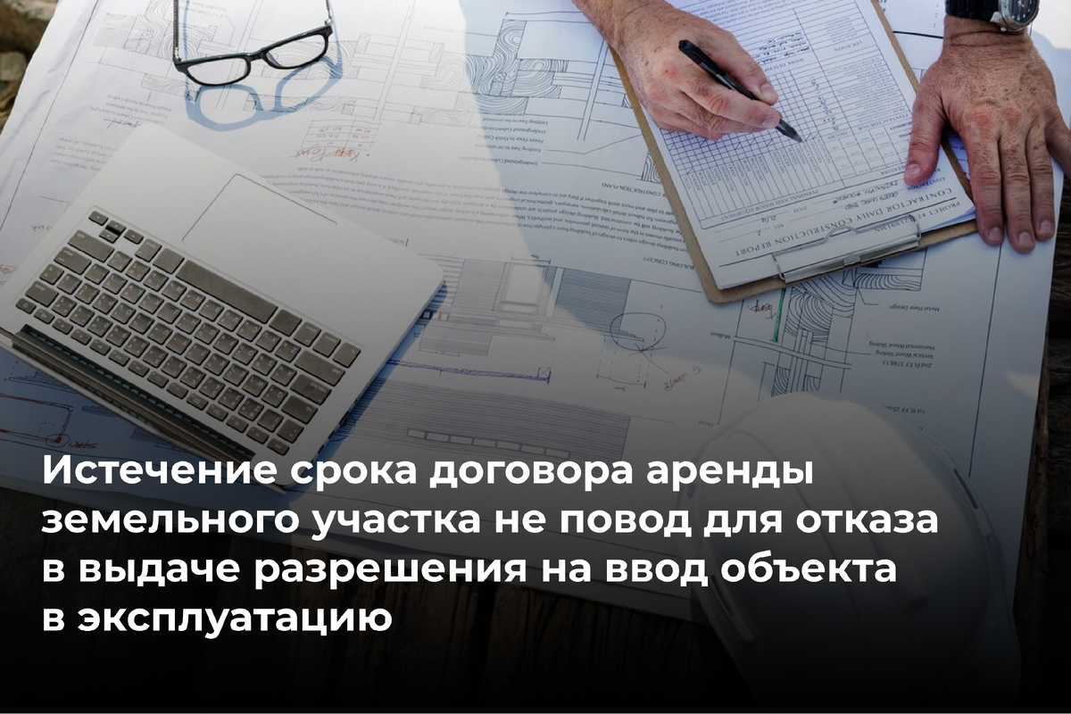 ➡️ Истечение срока действия договора аренды участка, предоставленного для строительства объекта недвижимости, на момент обращения с заявлением о выдаче разрешения на ввод в эксплуатацию объекта, который правомерно возведен в период действия разрешения на строительство на арендованном участке, не свидетельствует об отсутствии правоустанавливающих документов на землю и не может являться основанием для отказа в выдаче разрешения на ввод объекта в эксплуатацию со ссылкой на нарушение пункта 1 части 3 статьи 55 Градостроительного кодекса.