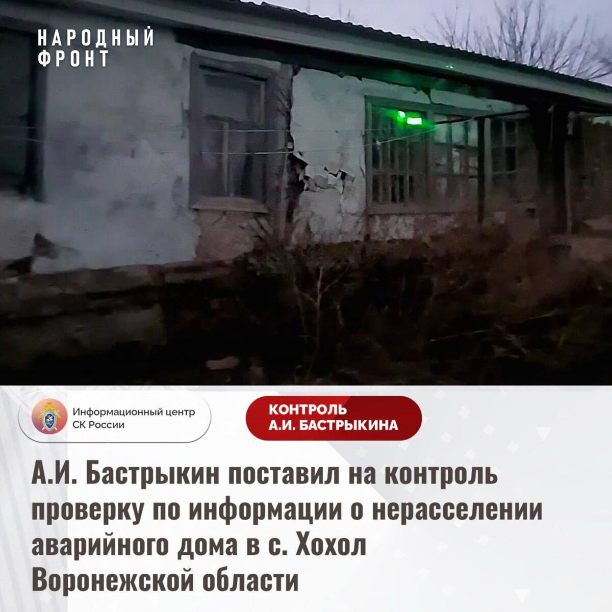 Глава СК поставил на контроль проверку по информации о "зависшем" расселении аварийного дома в селе Хохол Воронежской области