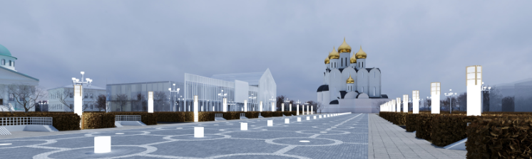 Главной темой при разработке проекта стала архитектурная концепция «Призраки прошлого» — восстановление обликов утраченных зданий в виде полупрозрачных сеток.