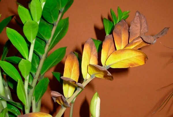 В домашних условиях замиокулькас чаще всего поражается: