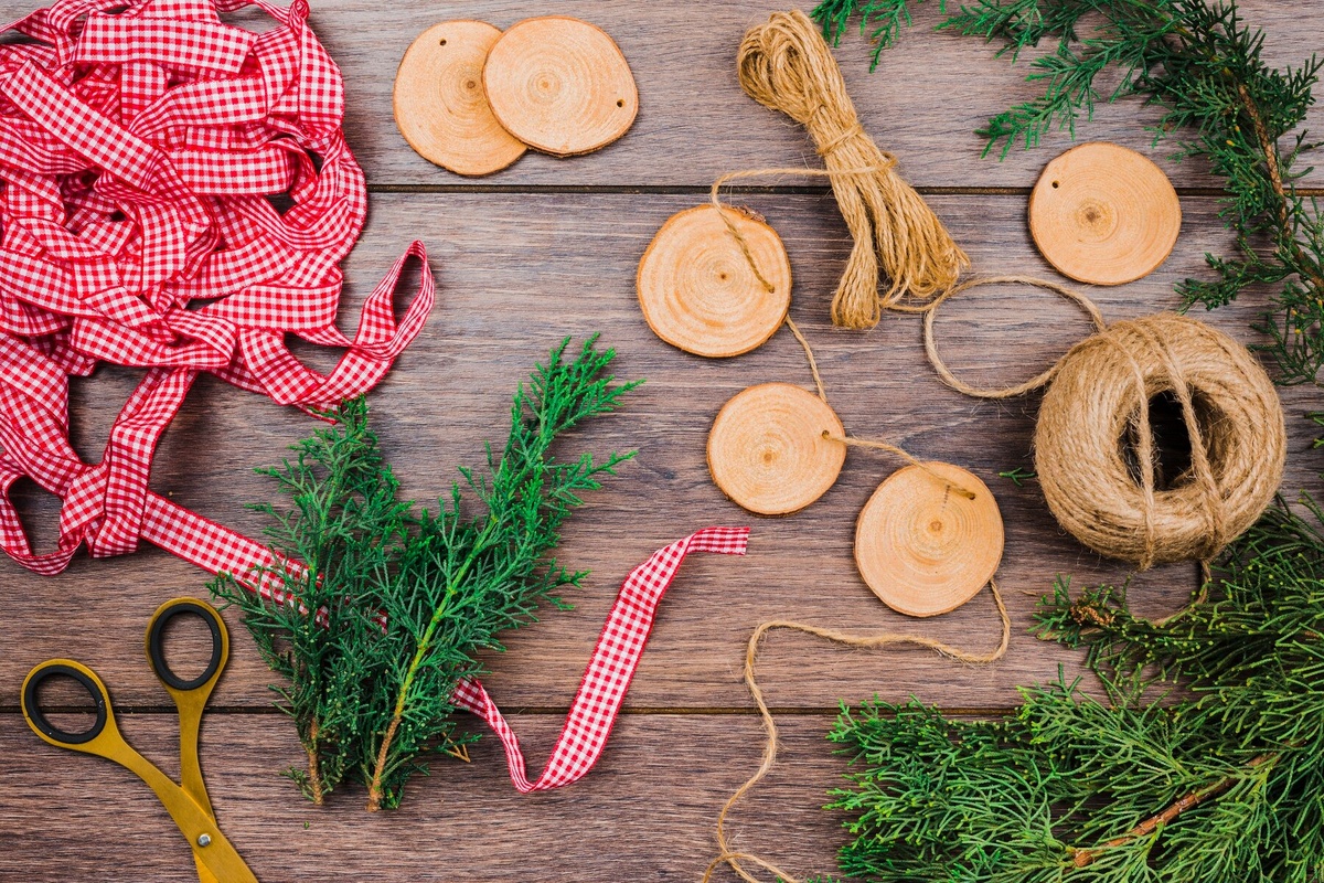 Для подвешивания украшений и создания гирлянд пригодятся тонкие ленты, а также проволока – без неё будет сложно сделать гирлянды и различные подвесные конструкции. При изготовлении ёлочного и новогоднего декора помните о безопасности. При работе с инструментами обязательно используйте защитные очки, перчатки и маску, чтобы избежать травм и попадания пыли в дыхательные пути.