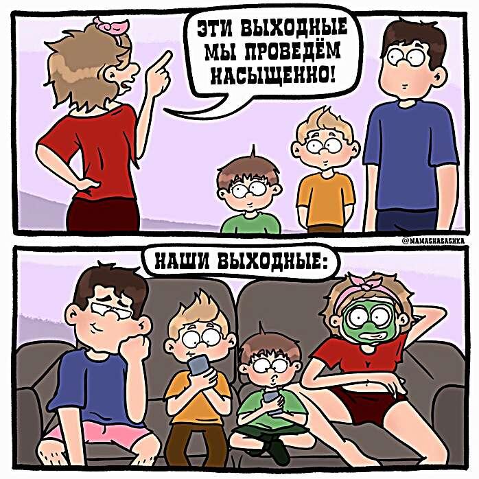 Автор, о комиксах которой сегодня пойдёт речь сейчас немного рисует, предпочитая более простые и не затратные по времени форматы, вроде тик-ток видео или черновых зарисовок. Но это не из-за лени. А потому что Саша не так давно стала многодетной мамой, родив дочку Алису. Ещё и двое пацанов подрастают. Короче, времени на творчество остаётся немного. Однако, материала за эти годы накопилось предостаточно. Так что, сегодня вас ждёт новая подборка от семейки Мамаши Монстра. Саша - приколистка, мама двоих пацанов, любительница фэнтези и не боится показать себя без прикрас. Художница рисует смешные комиксы с реальными сюжетами из жизни своей семейки. Вы наверняка не раз видели её прикольные работы с пушистыми и зубастыми персами. (Если нет - парочка сборников ждёт вас в конце статьи). Сейчас комиксы Мамаши Монстр выходят под новым ником mamashasashka. Это небольшие стрипы на разные темы и с умением посмеяться над собой. А как вы проводите свободное от учёбы и работы время в семейном кругу? У