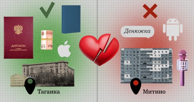 «Локация во многом определяющий пункт, — считает 27-летняя жительница Таганки Полина. — Он транслирует, какой образ жизни ведет мужчина, какая среда его формирует, насколько ему важна эстетика, его личные амбиции и, в конце концов, уровень его материального положения. Я уверена, что владелец ипотечной однушки в Митино — хороший человек, просто не для отношений именно со мной».