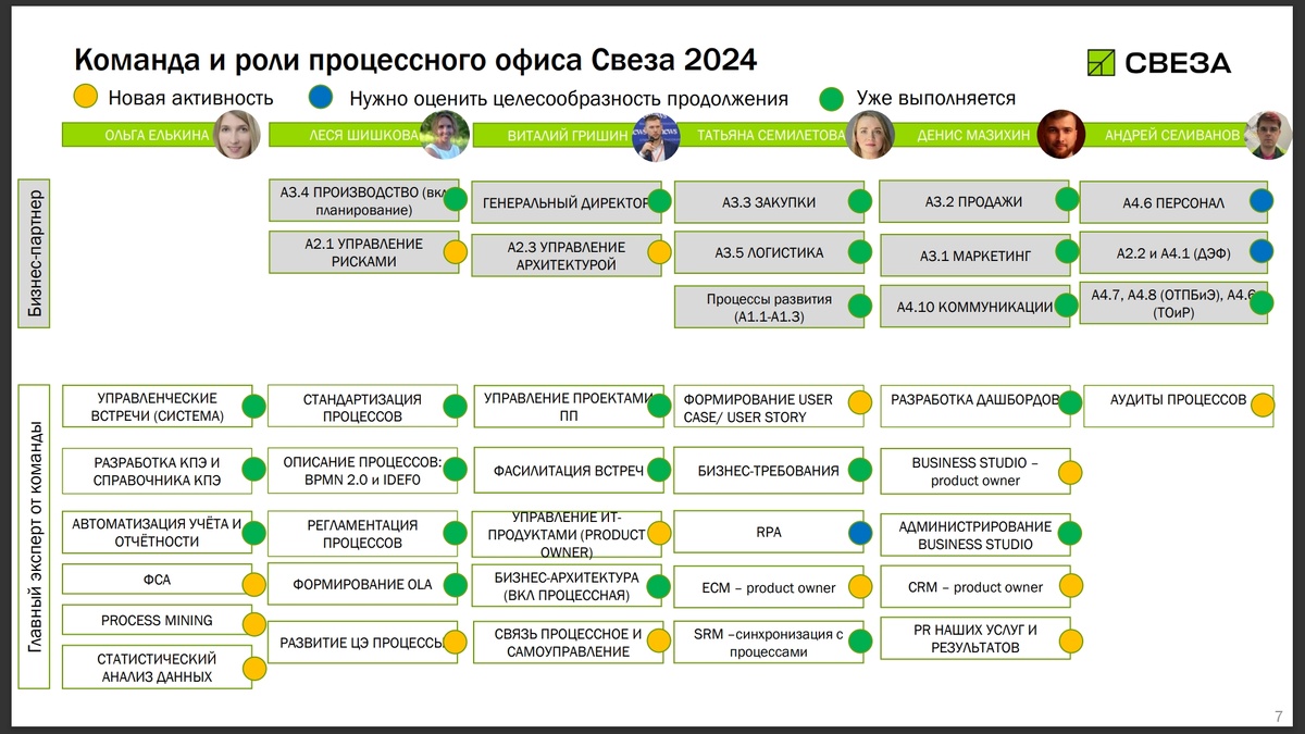 Дополнительно назначены и работают аналитики в одной дирекции (по бизнес-направлению). Главные решённые и решаемые задачи с помощью процессного управления