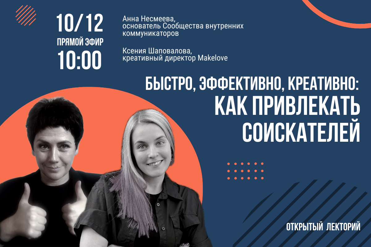 🔜 Завтра в 10:00 встречаемся в прямом эфире и обсуждаем тему «Быстро, эффективно, креативно: как привлекать соискателей». Зарплата давно перестала быть основным критерием выбора работодателя. Сегодня нужно показывать компанию во всей красе: говорить о ценностях, миссии, проектах, формировать образ бренда, причем делать это необычно, чтобы выделяться в бесконечном информационном потоке. Обсудим тренды и узнаем, как их использовать в коммуникации. Разберем простые и эффективные механики для вовлечения и привлечения. Вдохновимся креативными кейсами и нестандартными решениями! 👩💼Спикер: Ксения Шаповалова, креативный директор Makelove. Эксперт по креативу и креативным решениям в HR-сфере. С 2015 года занимается employer-брендингом. Обладательница наград рекламных и HR-фестивалей: RAD Awards, WOW!HR, премия HH, Silver Mercury, ADCR, Red Apple и др. ⏰10/12 в 10:00 мск Для участия необходима регистрация
