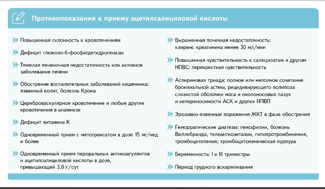 Ацетилсалициловую кислоту (АСК) называют "королевой НПВС" (неспецифические противовоспалительные средства). Это одно из самых популярных лекарств. За последнее десятилетие у неё нашли как множество полезных свойств, так и немало побочных эффектов. На основе новых научных данных можно выделить 5 фактов об ацетилсалициловой кислоте. Клинические рекомендации (КР), в которых ацетилсалициловую кислоту указывают как обезболивающий и противовоспалительный препарат: головная боль напряжения (ГБН), мигрень, хронический болевой синдром (ХБС) у взрослых, нуждающихся в паллиативной помощи, гонартроз, острый средний отит, острый тонзиллофарингит. Однако всегда необходимо оценивать факторы риска приема АСК и её токсичное действие на желудок. Жаропонижающее действие АСК средневыраженное, а побочных эффектов больше, чем у других антипиретиков. По этой причине принимать ацетилсалициловую кислоту для снижения температуры не рекомендуют. Однако АСК есть в комбинированных средствах, которые облегчают