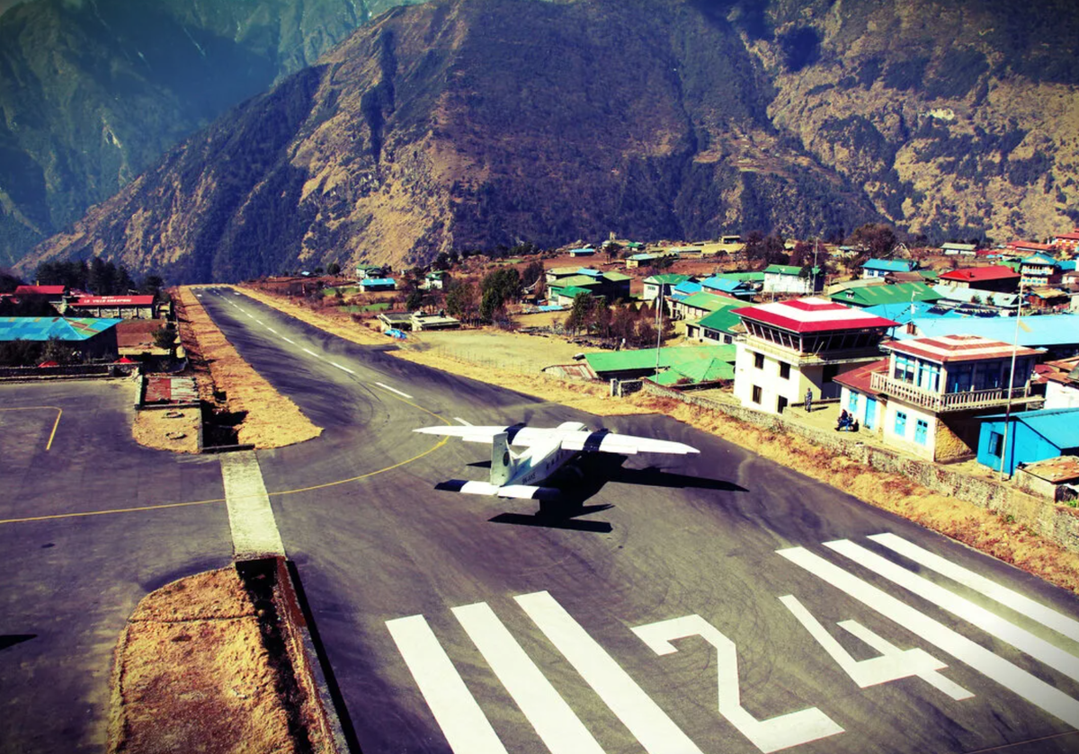 Для тех, кто мечтает покорить Эверест, путь начинается с аэропорта Лукла. Этот небольшой аэропорт расположен на высоте 2 860 метров над уровнем моря, окружённый заснеженными пиками Гималаев. Его взлётно-посадочная полоса длиной всего 527 метров и имеет уклон в 12 градусов, что делает посадку и взлёт невероятно сложными.