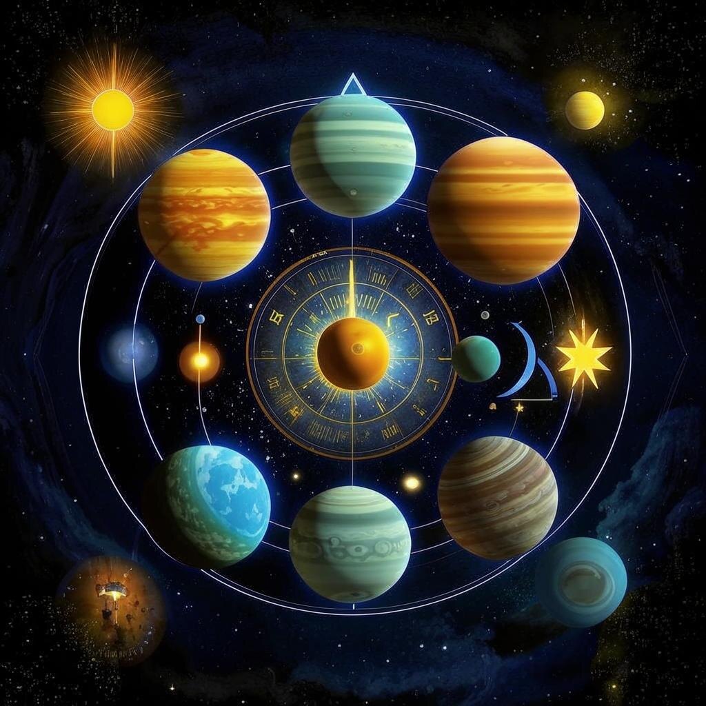 Солнечная система представляет собой лишь крошечный фрагмент в пределах нашей обширной галактики. Планеты были названы в честь мифологических божеств Древней Греции и Рима. Солнце занимает центральное место в нашей системе, а в астрономии насчитывается лишь восемь планет, поскольку Плутон изменил свой статус. В астрологии же он продолжает считаться важным небесным телом, влияющим на человеческую натуру. Планеты, находящиеся дальше от Солнца, описывают более продолжительные орбиты. Тела, которые завершают полный цикл вокруг Солнца за срок, превышающий продолжительность человеческой жизни, именуются высшими планетами в астрологии. Юпитер и Сатурн обозначают социальные планеты. Личные планеты имеют временные рамки, сопоставимые со средней продолжительностью жизни человека. Их воздействия различны: личные планеты формируют личностные черты и уникальные качества каждого индивида, в то время как высшие планеты могут вдохновлять и предоставлять талант, охватывая более широкий круг жизней. Одн