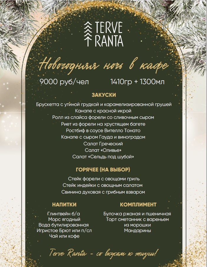 Приглашаем на Новогоднюю ночь в кафе и ресторан Терве Ранта!