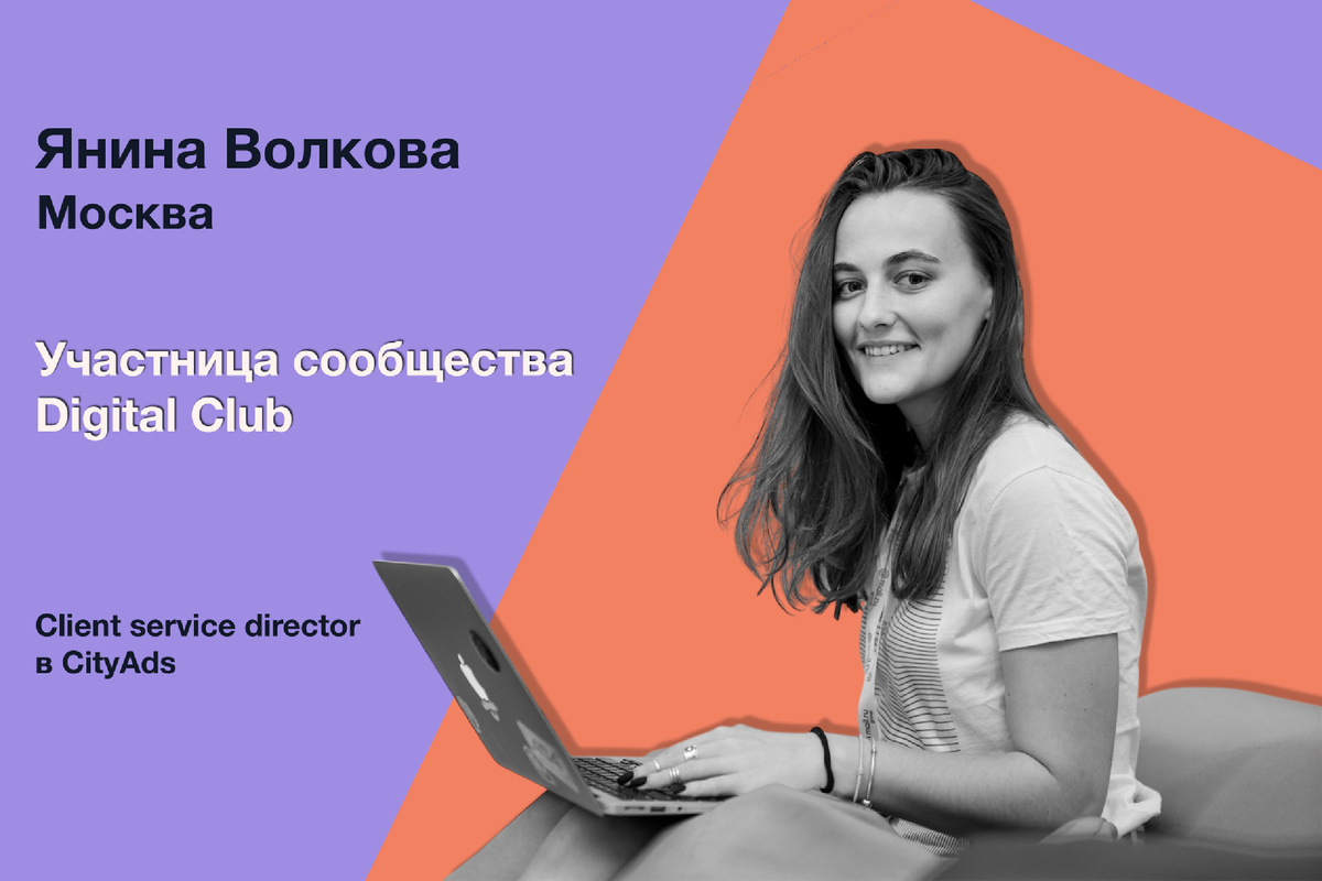 Сегодня наша гостья – Янина Волкова. Янина – участница сообщества Digital Club, а также клиентский директор в команде CityAds.