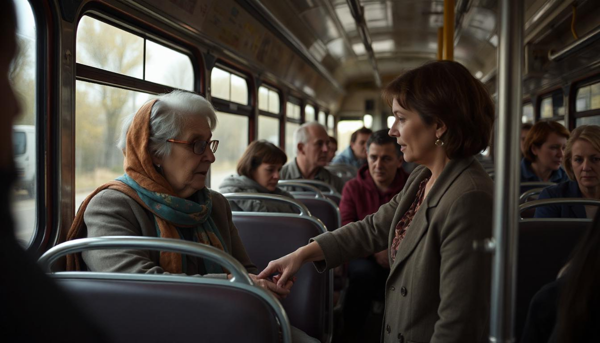 Автобус остановился. На остановке вошла совсем старенькая цыганка. Клавдия цыган с детства боялась, не любила. Мест свободных не было, а пожилая женщина так и осталась стоять. Клавдия из-за приоткрытых век наблюдала. Никто не пошевелился. Все сделали вид, что очень внимательно что-то изучают за окном. Автобус трясло на ямах и ухабах, а пожилую женщину мотало из стороны в сторону.