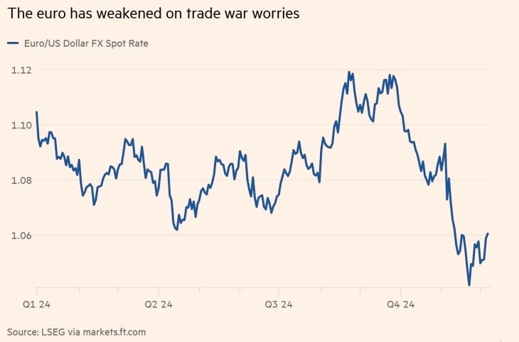 Гигант в сфере облигаций заявляет, что евро уязвим для дальнейшего снижения на фоне «оптимизма» рынка относительно влияния президентства Трампа Гигант облигаций Pimco предупредил, что последствия торговой войны, начатой Дональдом Трампом, могут привести к снижению процентных ставок в еврозоне до «чрезвычайных уровней», поскольку политики стремятся смягчить удар по испытывающей трудности экономике блока. Эндрю Боллс, главный инвестиционный директор по глобальным облигациям с фиксированным доходом в управляющей компании с активами на сумму 2 трлн долларов, заявил, что ожидает «нескольких раундов игры», когда речь зайдет о тарифах, политике, которой неоднократно угрожал избранный президент США. «Худший вариант торговой ситуации будет трудным» для Европы, сказал Боллс Financial Times. «Я склонен думать, что мы устанавливаем цены по довольно благоприятному сценарию». Европейские активы понесли большие потери, поскольку рынки готовятся к пакету мер политики Трампа «Америка прежде всего». Е