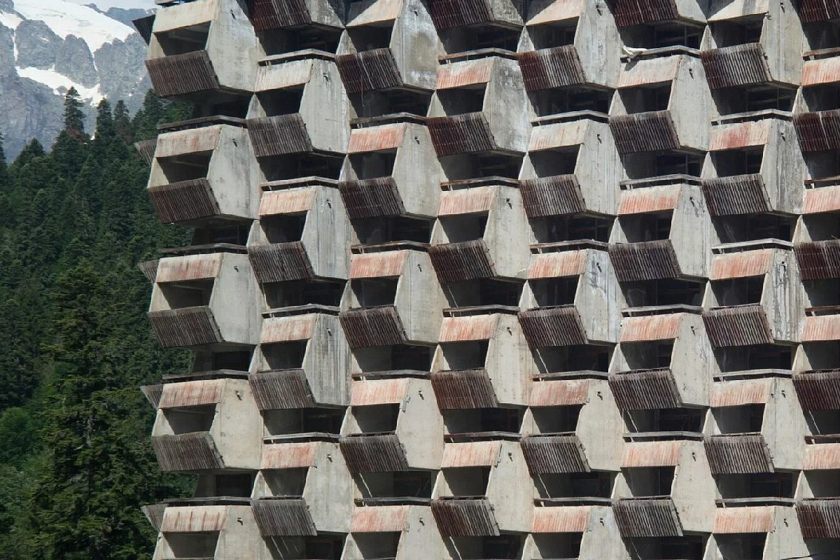 Для справки: «Аманауз» - недостроенная гостиница в стиле советского модернизма, расположенная в посёлке Домбай в Карачаево-Черкесии. Здание было возведено в 1985 году.
