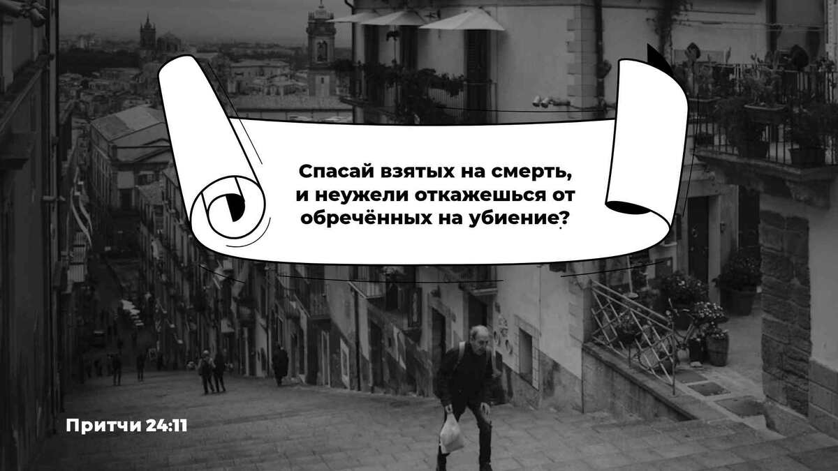 "Спасай взятых на смерть, и неужели откажешься от обречённых на убиение?"