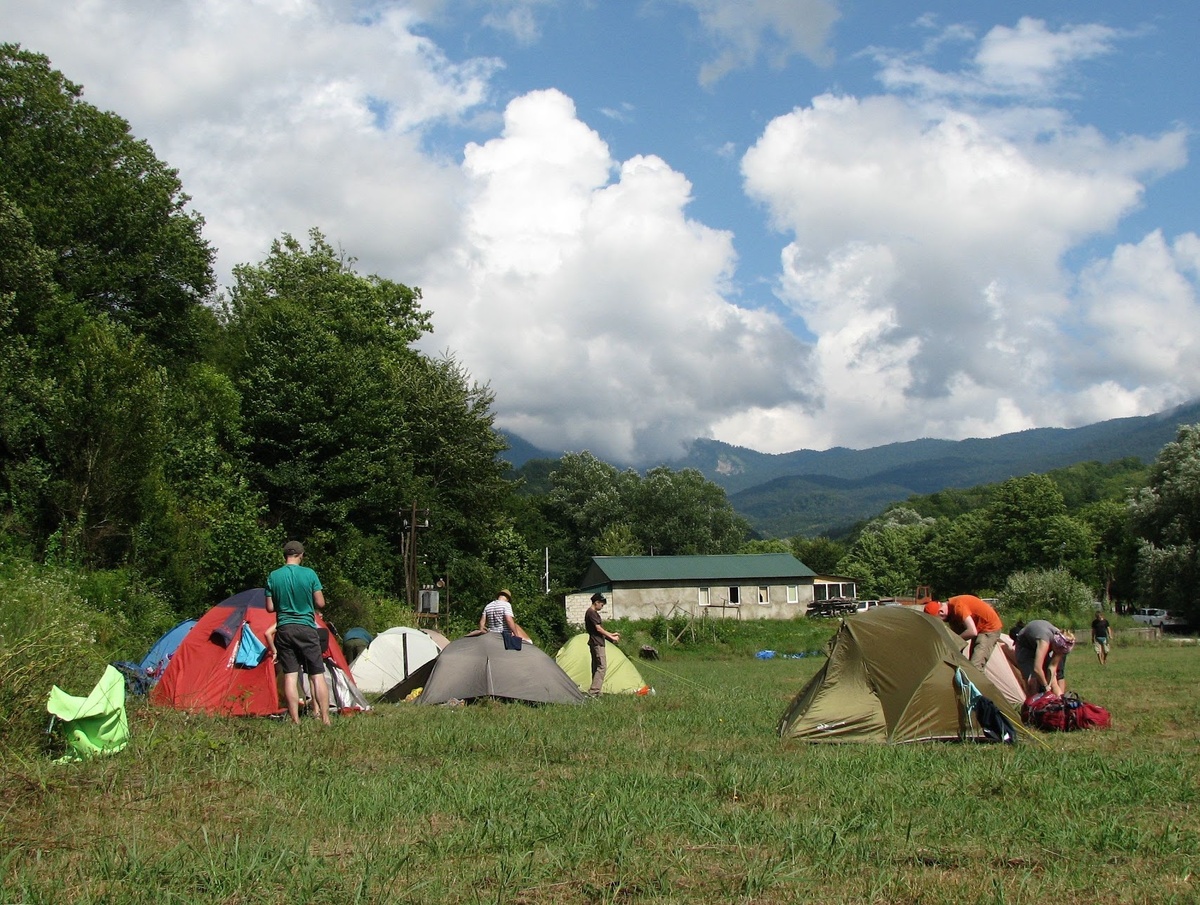 В 10 встречаемся с группой, пока ждём инструктора Витю - украдкой разглядываем друг друга. Появляется Витя, распихиваем по рюкзакам продукты и “общак”, грузимся в 2 “газели” и стартуем к абхазской границе. Дневная жара с непривычки кажется невыносимой - непонятно как в таком пекле просто выжить, не то что идти под рюкзаком.