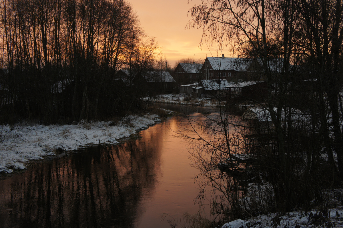 Завораживающе тихим выдалось это утро — настолько тихим, что даже все соседские собаки почему-то молчали. Я слышала, как они лаяли среди ночи, реагируя на невидимых во тьме лесных визитеров, лаяли они и накануне вечером, когда мы шли мимо них на воскресный послеобеденный моцион. А утром хранили нехарактерное таинственное молчание, не нарушали предрассветный покой. Я шла по запорошенной полевой дороге, и шаги отзывались хрустом — выпавший на влажную землю снег превратился в ледяную корку, а лужи в канавах и колейных ложбинах промёрзли до самого дна. Кажется, что всё вокруг застыло, остолбенело и затихло — притаилось в ожидании нового дня. Зима в этом году не торопится. За первую неделю декабря она успела выполнить без особого энтузиазма лишь тот минимум своих погодных обязанностей, что необходим для окончательных проводов осени — скупо припорошила землю белым и слегка охладила воздух. Снег есть, мороз есть — зима пришла. Не придерёшься. Единственное, о чём она не забыла — это приглушить