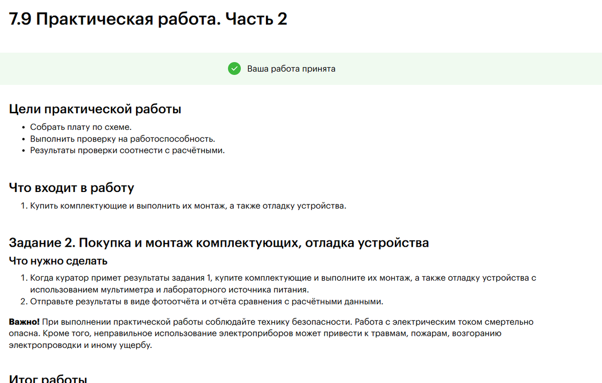 Предыдущие уроки, темы можно найти по этой ссылке.↓↓↓↓↓↓↓↓ (Если не отображается, значит заблокировал блокировщик рекламы, можете его выключить или найти данный материал на моем канале). Или нажать сюда. И снова всем привет, кто следит за моим обучением! За последние пару месяцев поступило уже много вопросов примерно одного и того же характера: нравится ли мне курс, стоил ли он своих денег и закончил ли я уже обучение. Итак, я всё ещё продолжаю обучение, сам курс мне нравится. Так как курс охватывает большой пласт информации, для выполнения практических заданий приходится дополнительно искать информацию как на просторах интернета так и книгах а иногда приходится обращаться нерестовым чатам(хотя они частенько ошибаются в своих выводах). Также для выполнения некоторых заданий нужно докупать как определённые микроконтроллеры, так и паяльное оборудование, которое тоже стоит недёшево. К примеру вот это задние↓↓↓↓↓↓↓↓ Решение данного задания. Если подвести мое мнение по курсу, главный плю