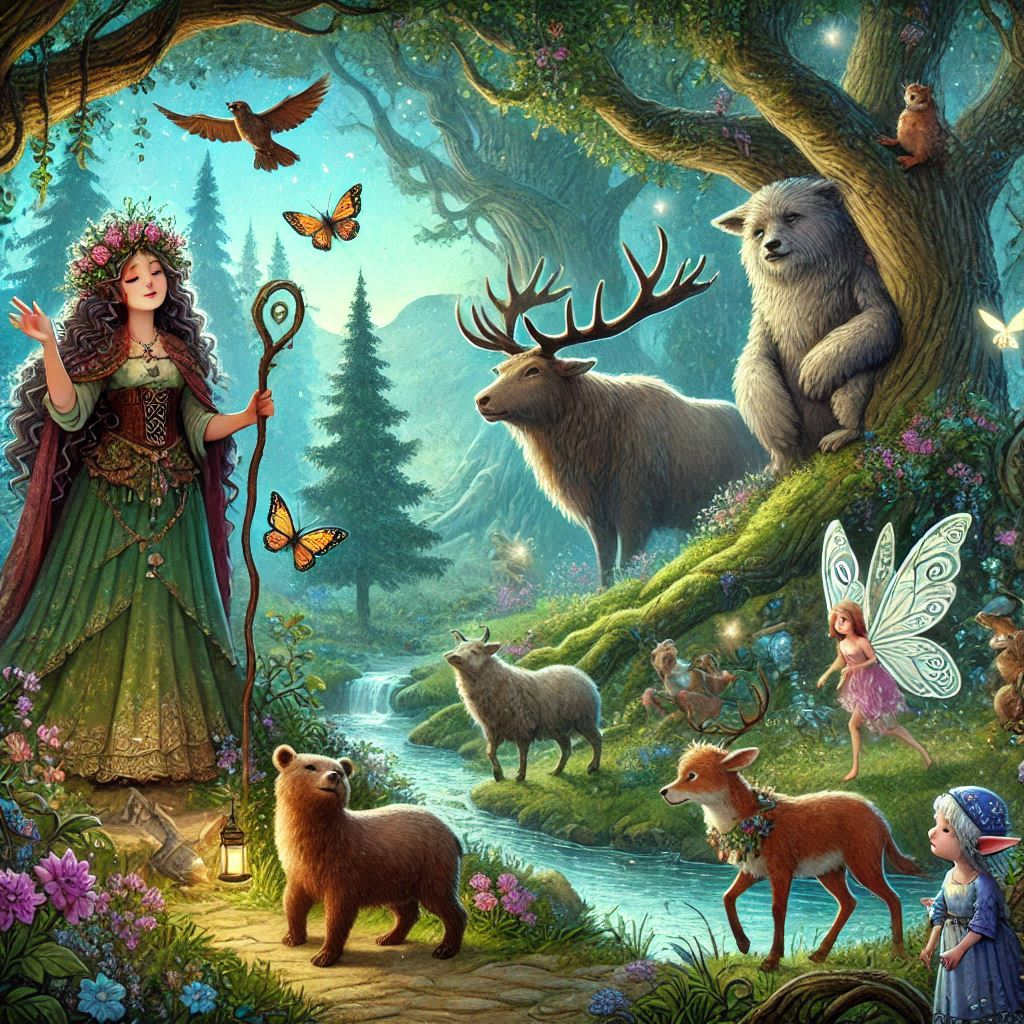 В одном далёком-далёком королевстве был волшебный лес, где жили самые разные сказочные существа: говорящие животные, добрые феи и мудрые старцы. В этом лесу всегда царила радость и веселье, потому что все его обитатели любили играть, учиться и помогать друг другу. Однажды в лес пришли двое детей, Маша и Петя. Они были очень увлечены своими новыми гаджетами и не замечали ничего вокруг. Они сидели под деревом и играли в игры на своих планшетах, не обращая внимания на прекрасный лес и его обитателей. Фея Лесная, увидев это, решила помочь детям понять, что они теряют. Она подошла к ним и сказала: — Дорогие дети, в нашем лесу есть волшебное озеро, которое исполняет желания. Но чтобы найти его, нужно пройти через весь лес и выполнить несколько заданий. Хотите попробовать? Маша и Петя, немного удивившись, согласились. Они убрали свои гаджеты и отправились в путь. По дороге они встретили говорящего зайца, который научил их прыгать через ручьи, и мудрую сову, которая рассказала им много интерес