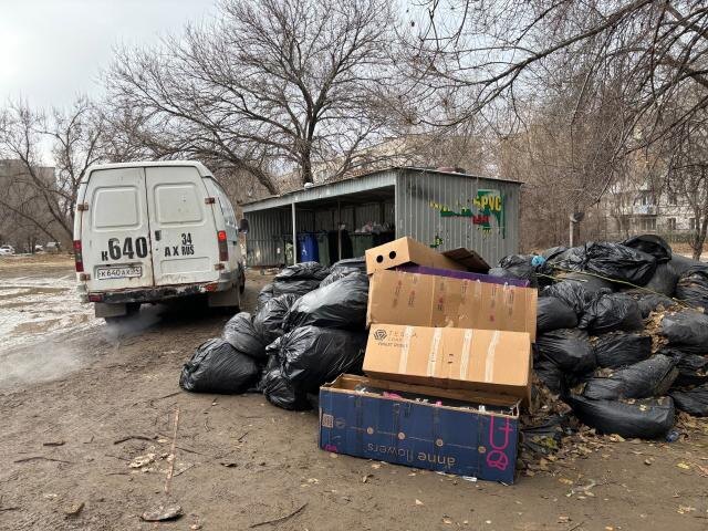 Волгоградцы жалуются на свалки рядом с контейнерными площадками. Один из грязных адресов - улица Жирновская, 15. Вокруг площадки - строительный мусор, горы пакетов с листвой, покрышки.
