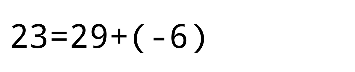 А давайте раскроем скобки. Получим 23 равно 29 плюс -6.