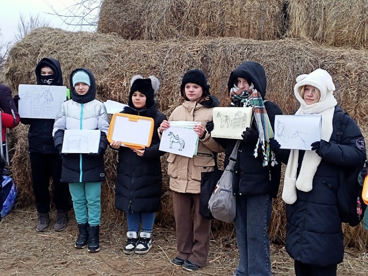 Юные художники из Волжского познакомились с природой поймы и лошадьми