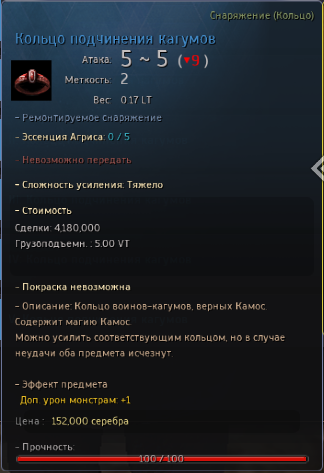 Кольцо Кагумов нулевого уровня усиления стоит 4,2 ляма. Смотрим сколько стоит это же кольцо , но первого уровня усиления: