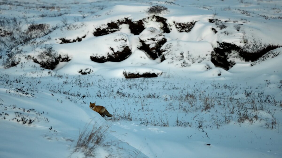 Лиса-крестовка, или сиводушка, навестила вахтовиков, работающих на Медвежьем месторождении в 50 км к юго-востоку от поселка Ныда. Фото «чумазого» от рождения хищника сделал один из рабочих.