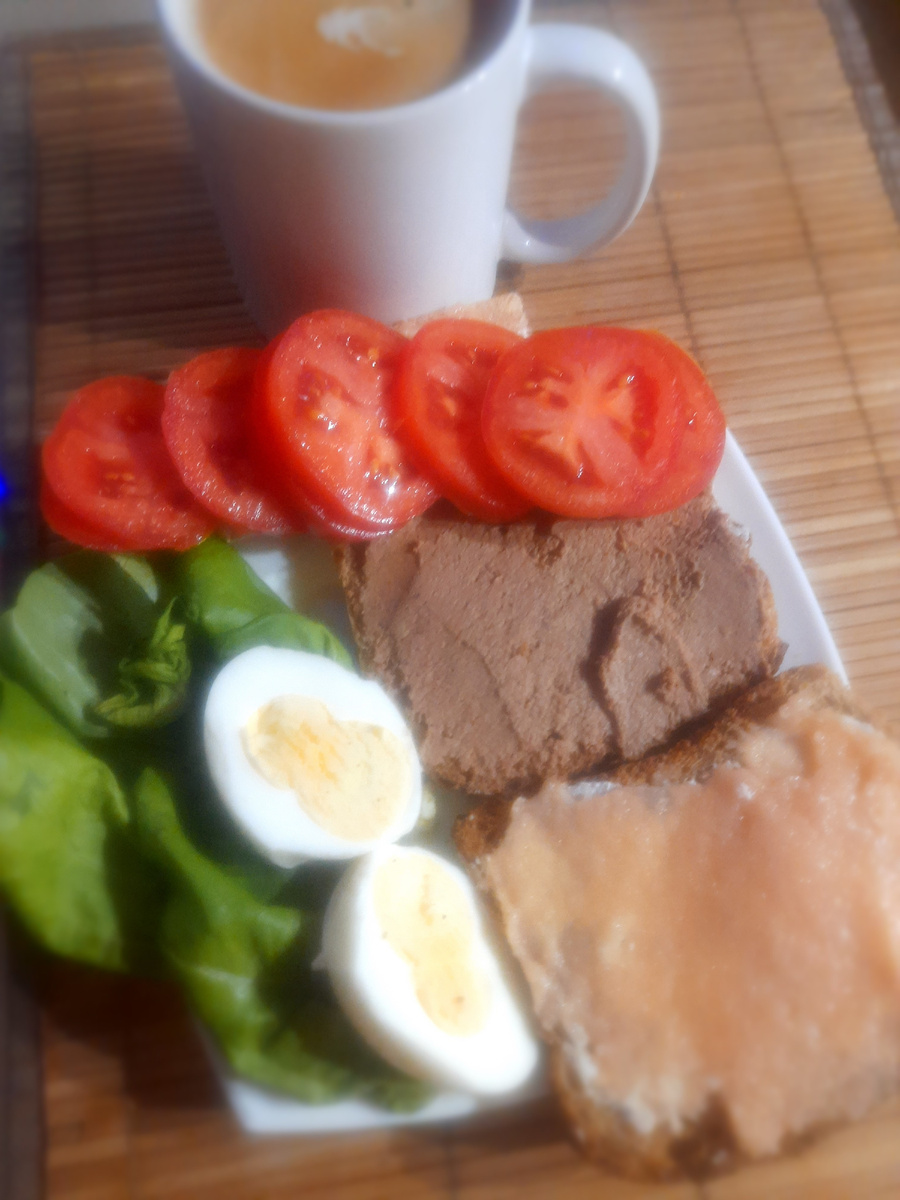 Всем привет 👋. Завтра у меня начинается интенсив по снижению веса. Доктор обещает, что будет много новейшей полезной информации из мира диетологии, что мы будем очень удивлены и довольны 😊. С нетерпением жду завтрашнего дня. Возможно, не будет времени публиковать рационы, не знаю насколько интенсивным будет интенсив😁, вот такой каламбур. Поэтому, пока есть время, напишу еще один денёк. Тортилья с яйцом ( 1 лепешка,1 ч л творожного сыра, 1 яйцо-глазок,0,5 ст огурцов и помидоров, лист салата). Сложить пополам, и еще раз пополам, прогреть на сковороде+ кофе/чай. 1 груша+5 орехов Грибной суп (картофель, шампиньоны, лапша, зелень) стандартная тарелка 250 мл+ 1 кусок хлеба+0,5 ст свежих огурцов+чай. Салат - 1 отварное яйцо,0,25 ст кукурузы, огурцы 0,5 ст,крабовые палочки 2 шт,зелень, греческий йогурт 1 ст л, соль+чай. Мой сегодняшний завтрак Все как положено 😁.