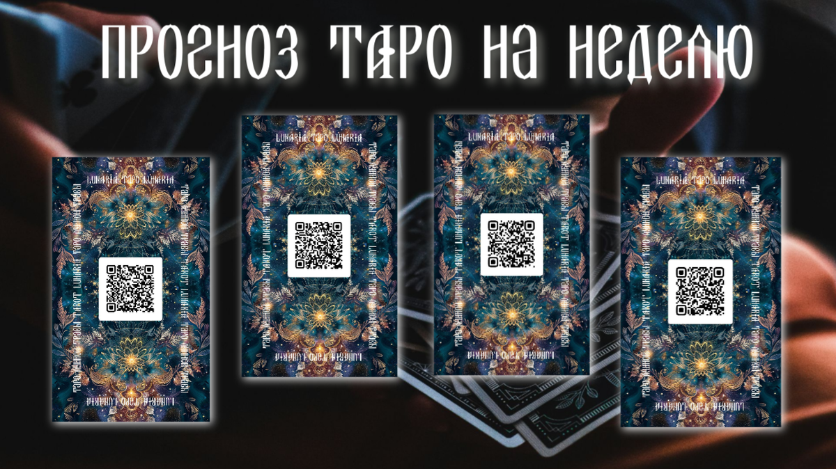 Преобладающая стихия недели - Огонь (масть жезлы). Что это значит? Что нам нужно пережигать ненужное или идти в сторону своей цели и мечты. То, как вы проведете неделю, будете работать с энергиями недели - то окажет влияние на ваше будущее. Для тех, кто в первый раз на канале. Меня зовут Наталья, я - автор своей собственной метафорической колоды Таро Лунной Травы. На ней же я рассказываю расклады и значения карт, тут, и в моем телеграмм-канале. У нас там уютно и комфортно, можно обсудить разное. Присоединяйтесь! Каждая карта - это реальная карта Таро Лунной Травы. Я вытащила 4, и одна из них - ваша. Сосредоточьтесь. Внимательно посмотрите на карту.... Какая вас притягивает? Когда однозначно решитесь, вот тогда смело открывайте карту. Как? Просто наведите камеру телефона на код. В нем - зашит уникальный код, ссылка на страницу карты на портале колоды Таро Лунной травы. Кстати, в реальных бумажных картах такие-же уникальные коды на каждой.. Ваша карта - ваша подсказка. У кого не получает