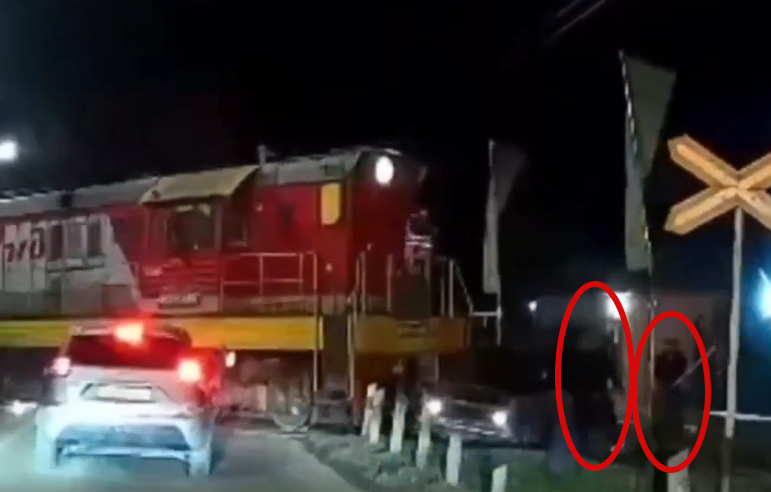 Русские мужики пытались ускользнуть от группы иноземцев, но их авто угодило под поезд. Далее иноземцы достали палки.