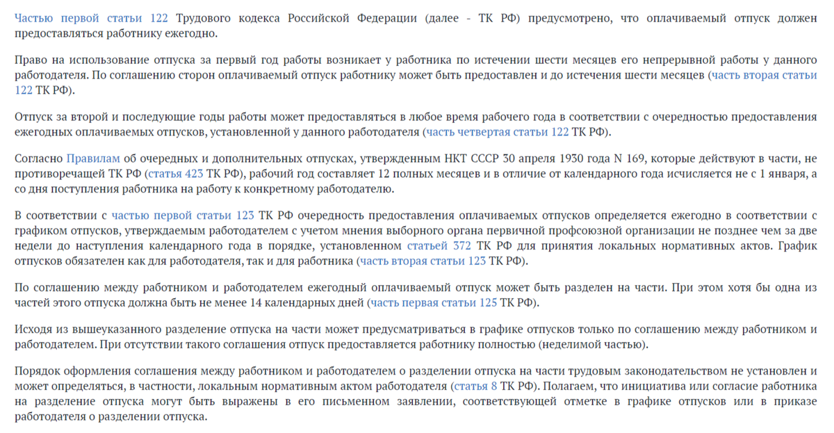 Вопрос: Обязательно ли получение согласия работника на разделение ежегодного отпуска на части при формировании графика отпусков?