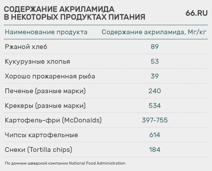 Во многих марках печенья встречается акриламид — химическое вещество, отнесенное к «вероятно канцерогенным для человека», поражающее главным образом нервную систему, печень, почки. До недавних пор продукты питания не считались возможным источником акриламида, при этом чрезвычайно жестко контролировалось его содержание в воде. Настоящий шок вызвали опубликованные результаты исследований шведских ученых, обнаруживших запредельные концентрации этого соединения в популярных продуктах питания.