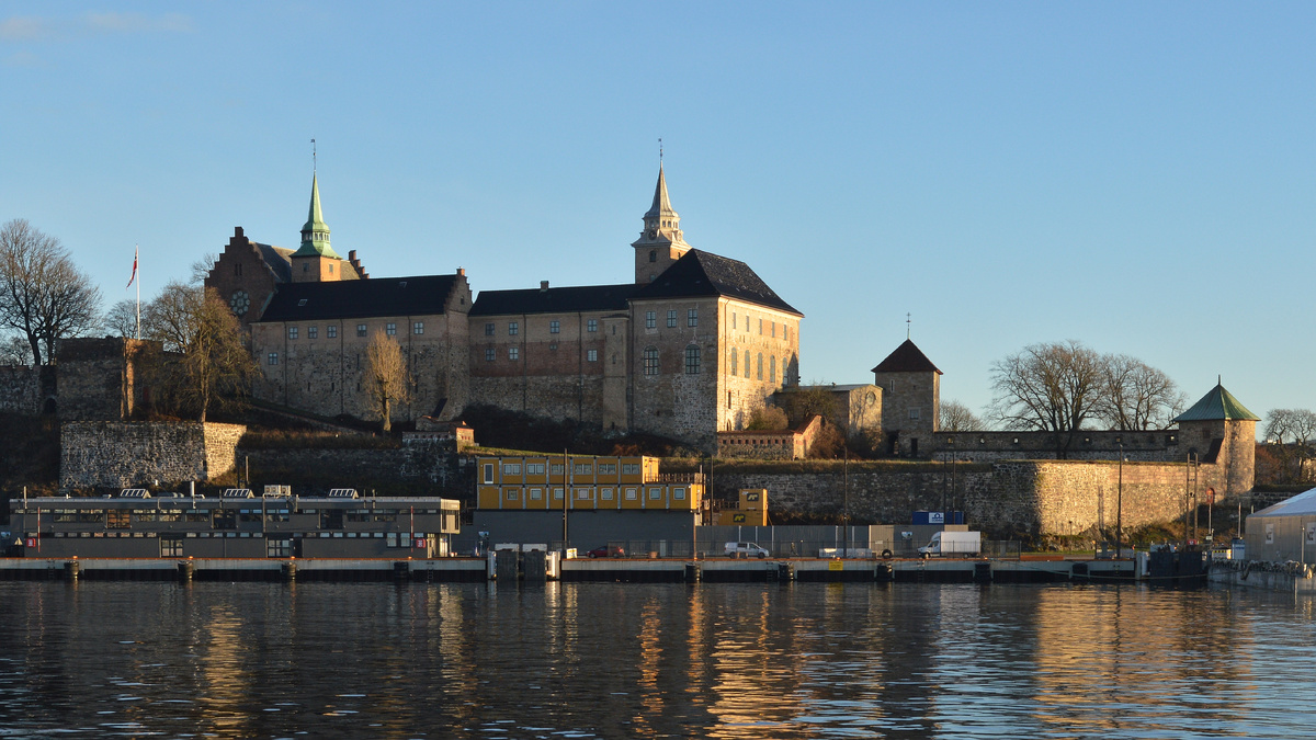 Штаб вооруженных сил и министерство обороны Норвегии находятся, разумеется, в столице страны. Осло по-норвежски звучит ушло... (Уш-Ло - что означает Усть-Ло) и впервые упоминается в своде саг «Круг Земной» исландского скальда Снорри Стурлусона - что основал город Харальд III Суровый в 1048 году, а крепость, как считается, основал конунг Хокон V Святой в конце XIII века. В Осло-фьорд вдаётся мыс, разделяющий его на две бухты, вот на нём и выстроили Акерсхус (крепость у реки Акерс) - это самое древнее сооружение в столице, самая первая каменная крепость Норвегии, бывшая одновременно и крепостью, и замком. Замок пережил осаду шведов под руководством Эрика Магнуссона (соправителя ярла Биргера, того самого, построившего первую крепость на месте будущего Санкт-Петербурга, Ландскруну, и ставшего причиной для новгородского князя Александра называться Невским) в 1308 году. В 1527 году замок сгорел дотла от удара в него молнией - Тор на что-то разгневался на своих же... и замок чуть позже был пе