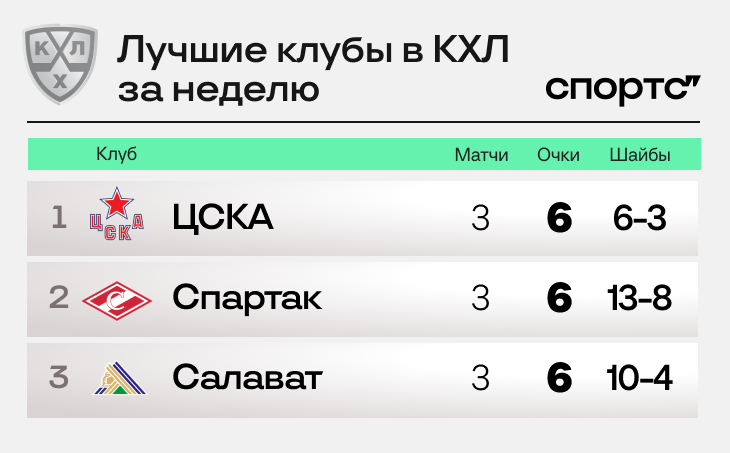 Лучшие клубы: одинаковые победы ЦСКА, яркие серии «Спартака» и «Салавата»