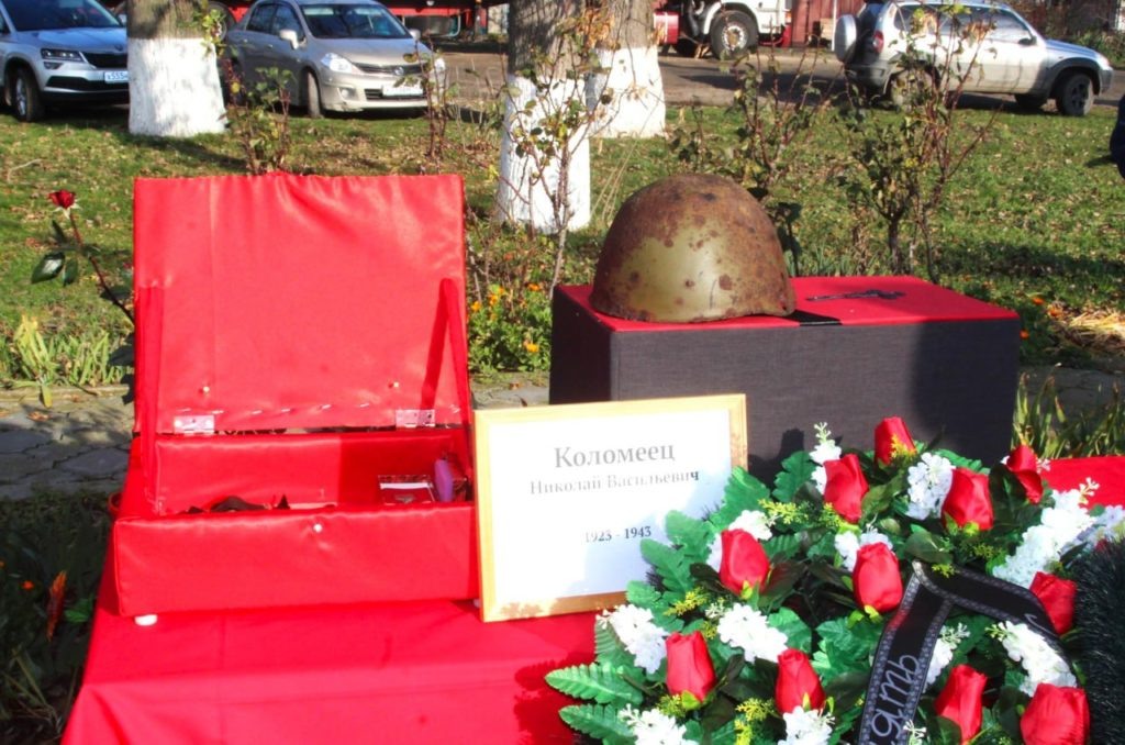 Наш земляк погиб в сентябре 43-го на Западном фронте, в районе деревни Каширино Смоленской области. В церемонии приняли участие представители администрации и депутатского корпуса города-курорта, школьники и жители села. «Останки Николая Васильевича Коломейца нашей делегации передали в Москве в военном мемориале «Пантеон защитников Отечества» при участии членов Совета Федерации Федерального собрания. Эта церемония состоялась в День Неизвестного солдата. Этот человек считался пропавшим без вести. А сегодня, в День Героев Отечества мы предаем прах нашего земляка родной земле», – открыл митинг вице-мэр Анапы Валерий Плотников. Глава администрации Первомайского сельского округа Игорь Левченко поблагодарил смоленских поисковиков за их самоотверженную работу. Рядом с останками были обнаружены подсумок, ремень, саперная лопатка, каска и медаль «За Отвагу». По этой медали удалось установить личность красноармейца. Эти реликвии передали в Юровский музей. А прах воина после панихиды с почестями п