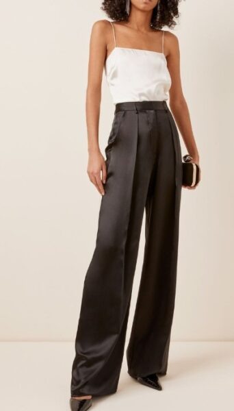 Черные брюки – не самый очевидный выбор в качестве наряда на новогодние праздники. Однако это очень практичный и стильный вариант. Черные брюки в отличие от праздничного платья вы сможете легко вписать в свой повседневный гардероб. Праздничная ночь в удобных брюках будет действительно веселой. В голову не придет мысль, что вам неудобно и пора покидать танцпол, чтобы наконец-то снять неудобный наряд. Секрет идеально образа с черными брюками кроется в правильно подобранном верхе, а именно – топе. Разбираемся, какие топы в тренде 2025. Любительницы не слишком броских нарядов оценят атласные или шелковые топы. Они элегантные, лаконичные и приятные для тела. Хотите добавить в образ изюминки? Выбирайте варианты с ассиметричным кроем. Для женственных образов подойдут модели с открытыми плечами. Что касается цвета, то хорошо будет смотреться шоколадный, черный, молочный, оливковый, синий. Хочется в новогоднюю ночь выглядеть ярко? Тогда присмотритесь к вариантам с рюшами и бантами. Хороши вариа