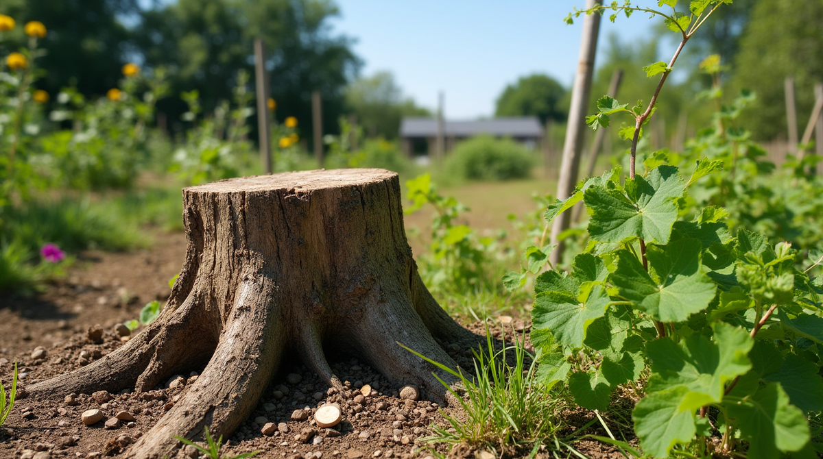 После вырубки деревьев на дачном участке остаются пни, которые мешают использовать землю по назначению. Их удаление может стать сложной задачей, особенно если вы не хотите применять физическую силу. К счастью, существуют эффективные и безопасные способы избавиться от пней без тяжелой работы. Пни не только портят внешний вид участка, но и могут стать источником проблем. Они привлекают насекомых-вредителей, таких как термиты или муравьи, которые способны навредить другим растениям или даже деревянным постройкам. Кроме того, разлагающийся пень может выделять неприятный запах и создавать благоприятные условия для роста грибка. Химическое разложение пня — один из самых простых и распространенных методов. Он не требует физических усилий и позволяет избавиться от пня за несколько месяцев. Для этого вам понадобятся специальные средства, такие как селитра (калиевая или аммиачная), которые можно приобрести в садоводческих магазинах. Высверлите в пне несколько отверстий диаметром 2-3 см и глуби