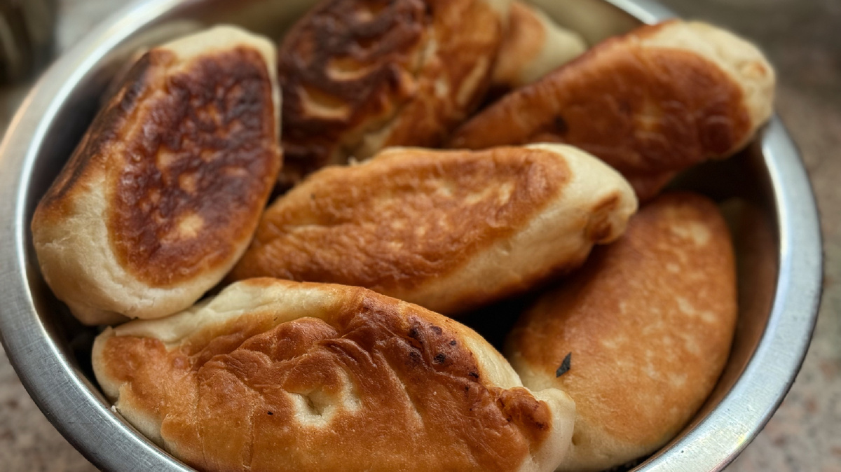 Сегодня второй день нашего “Адвент-календаря”, и атмосфера за окном будто создана для сказки. Снег мягкими хлопьями укрывает деревья и дорожки, все спокойно и безветренно. Когда-то в такие дни я, сидя за рулем, только ужасалась: «Сколько я простою в пробке? Как я припаркуюсь на сугробах?» Но сейчас, в декрете, снег вызывает лишь радость. Я любуюсь им с Мирой на руках и наблюдаю, как наша доберман Кира носится вокруг, прыгая по снегу как настоящий олененок. Сегодняшнее задание звучало просто, но тепло: приготовить что-то зимнее и согревающее. На даче, как вы знаете, всегда открывается “углеводное окно”, и вчерашняя отварная картошка не должна пропасть зря. Мы решили сделать жареные пирожки с картошкой и луком, и это был настоящий успех! Ингредиенты: - 500 г готового теста (мы использовали дрожжевое, но подойдет ваше любимое); - 4 средних отварных картофелины; - 2 луковицы; - масло для жарки; - соль и специи по вкусу. 1. Лук нарезать мелкими кубиками, обжарить до золотисто