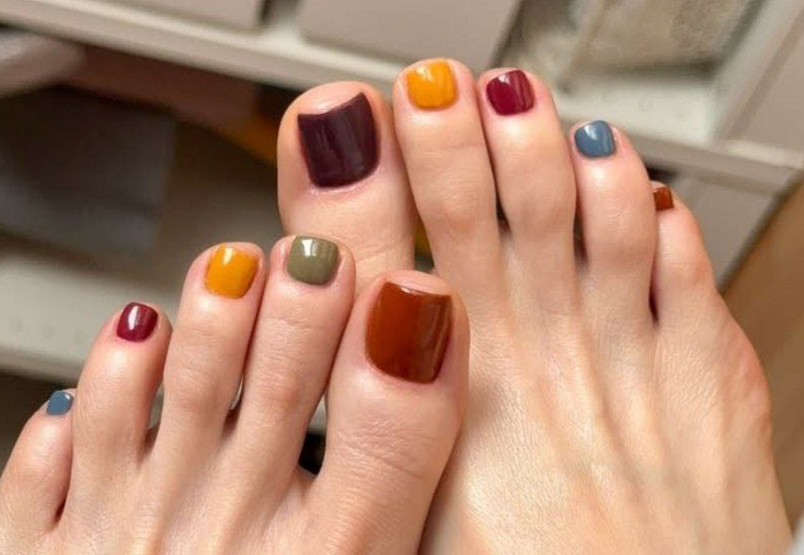 Наши стопы редко бывают на виду, особенно в холодное время года. Но это не повод лишать себя цветного педикюра! Делимся свежими идеями, как накрасить ногти на ногах, чтобы результат порадовал. Ногти на ногах меньше страдают от внешнего воздействия и медленнее растут, в отличие от своих ручных "собратьев". Поэтому при правильном уходе (ежедневном очищении и увлажнении стоп специальным кремом) педикюр дольше сохраняет свою красоту. В зимнем сезоне педикюрные тренды идут в ногу с маникюрными. Всегда актуальна однотонная покраска. Самые топовые цвета, по версии нейл-мастеров, – бордовый, темно-синий и классический алый. В тренде также припыленные оттенки – пыльно-фиолетовый, туманно-серый, тауп. Черный педикюр уступил место кофейно-шоколадному. Он красиво смотрится на ногтях и подчеркивает их правильную форму, поэтому требует предварительной подготовки пластин к нанесению. Модный компромисс между однотонным педикюром и ногтями с дизайном – хромированная втирка. Особенно трендовый вариант –